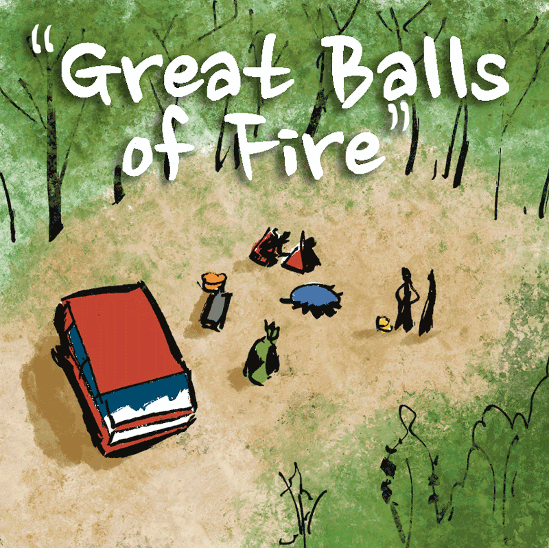 "Great Balls of Fire" The team takes a much needed nature break but nearly causes an environmental catastrophe if not for some quick thinking and musical talent.